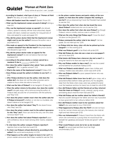 Woman At Point Zero Comprehension And Analysis Teaching Resources
